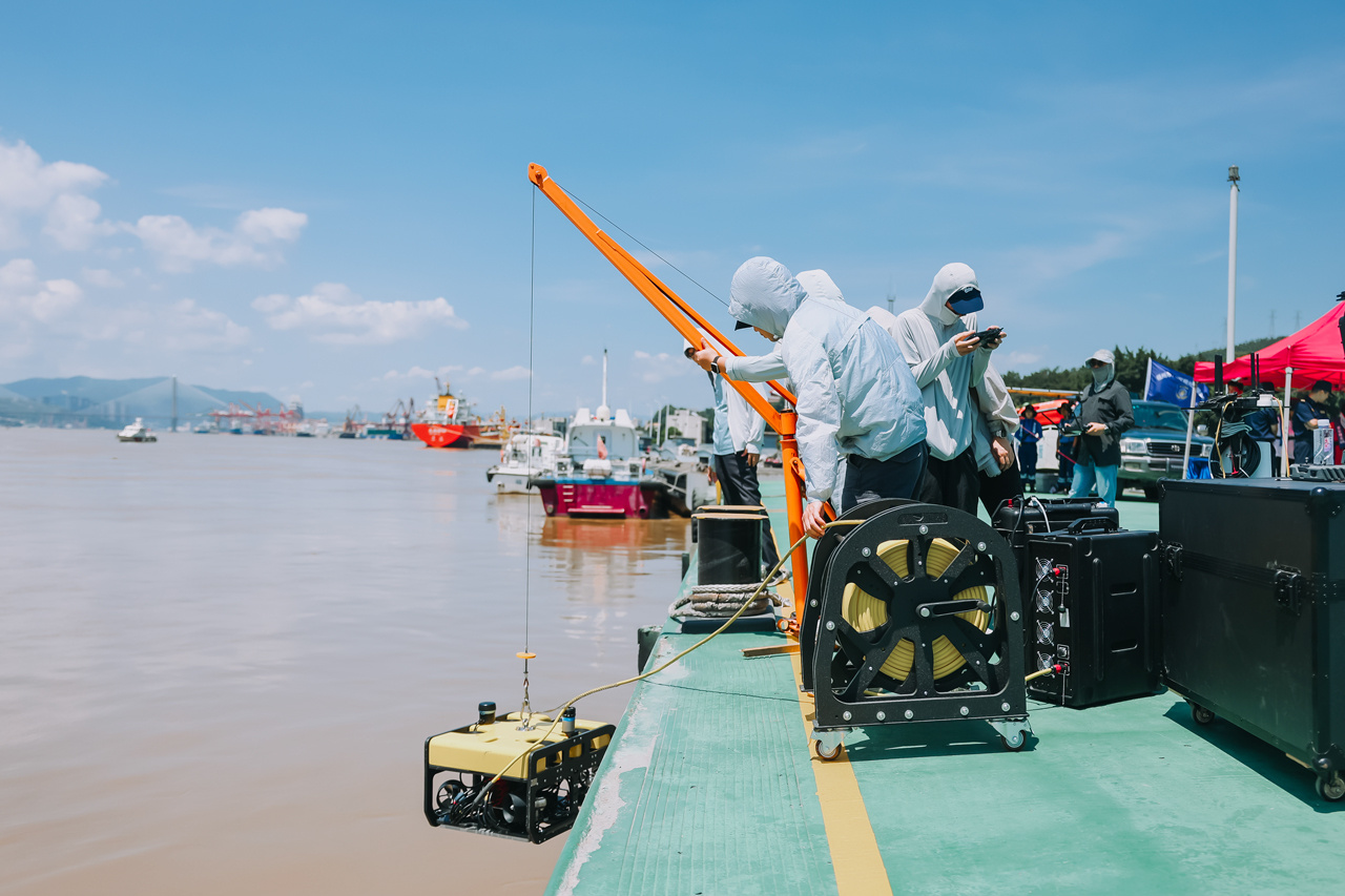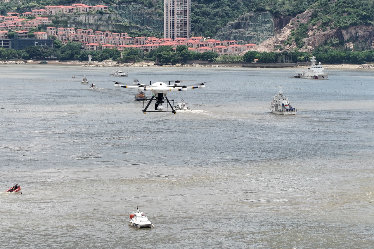 支队以“空、天、岸、江、海、潜”六维一体为核心,深度融合多类技术手段,彻底打破传统监管的空间局限,构建全域覆盖、无缝衔接的立体监管网络。“空”中:通过多台中型无人机开展巡航取证,“俯瞰”监控海域与江河动态;“天”基:依托高通量卫星宽带,对大中型渔船进行可视化监管;“岸”边:部署23路超清超视距智能感知终端及近300台智慧播报系统,覆盖30公里近岸海域、渔港码头、村居、养殖区等重点区域;“海”上:借助船载态势感知、无人船巡航等系统,实时掌握海上执法现场状况;“江”畔:在闽江流域布设百路星光级高清探头,智能预警非法捕捞行为,守护流域生态环境;“潜”域:通过水下机器人精准监测海底地形、水下非法设施及海洋生态环境,填补水下监管空白。
